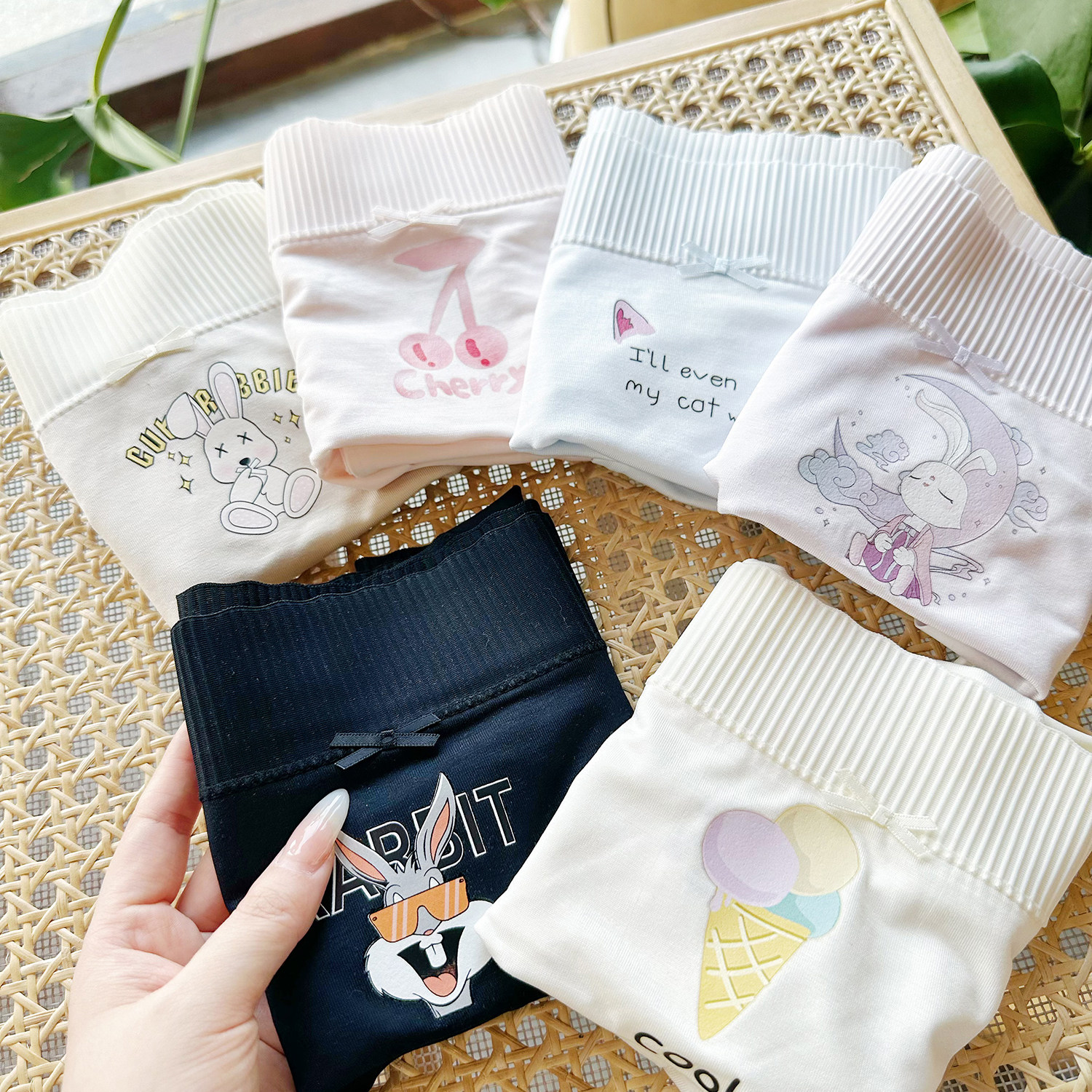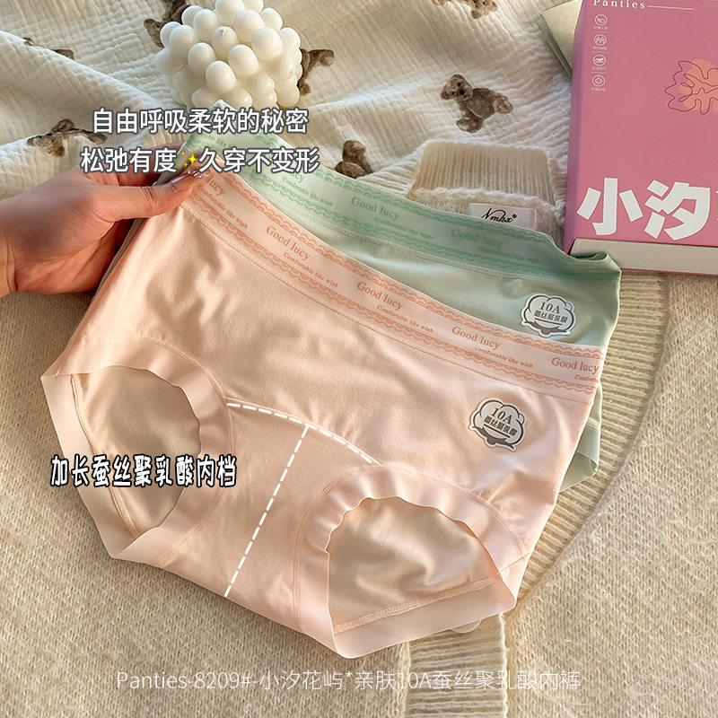 小汐花屿韩国ins亲肤10A桑蚕丝聚乳酸中腰字母腰头简约舒适内裤女