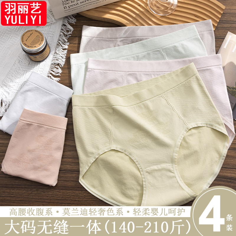 加大码胖mm210内裤女新款高腰无缝一体裸感亲肤贴身不夹臀三角裤