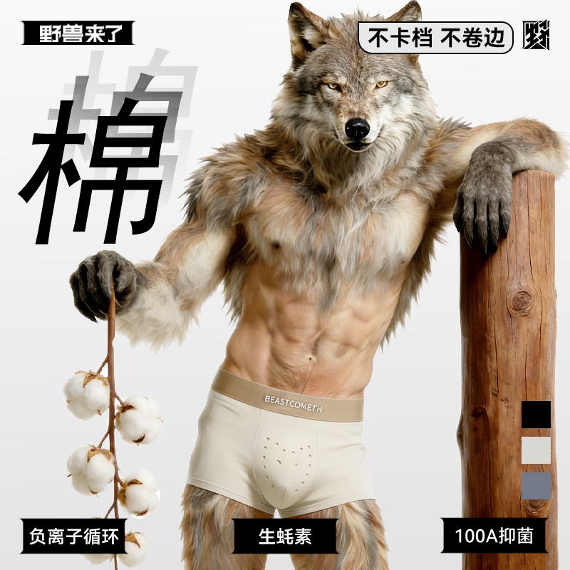 野兽来了【80s纯棉】2026新品无痕男士内裤100A抗菌生蚝养护内裤