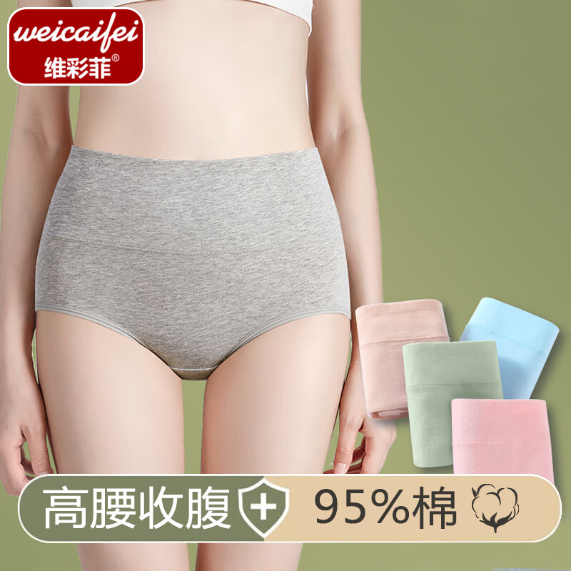 维彩菲 纯棉高腰内裤简约女士纯色棉质三角裤收腹舒适透气高腰亲肤内裤 【颜色随机】 搭配装 2条 XL (100-130斤左右)
