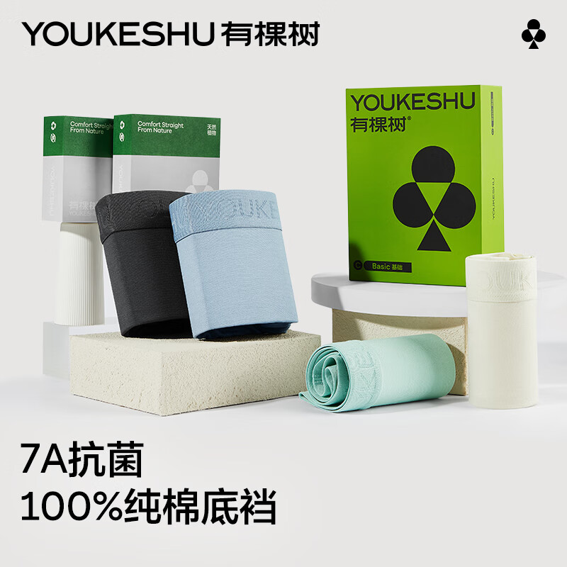 有棵树男士内裤男纯棉抗菌底裆透气高弹舒适精梳棉平角男生大码四角裤头