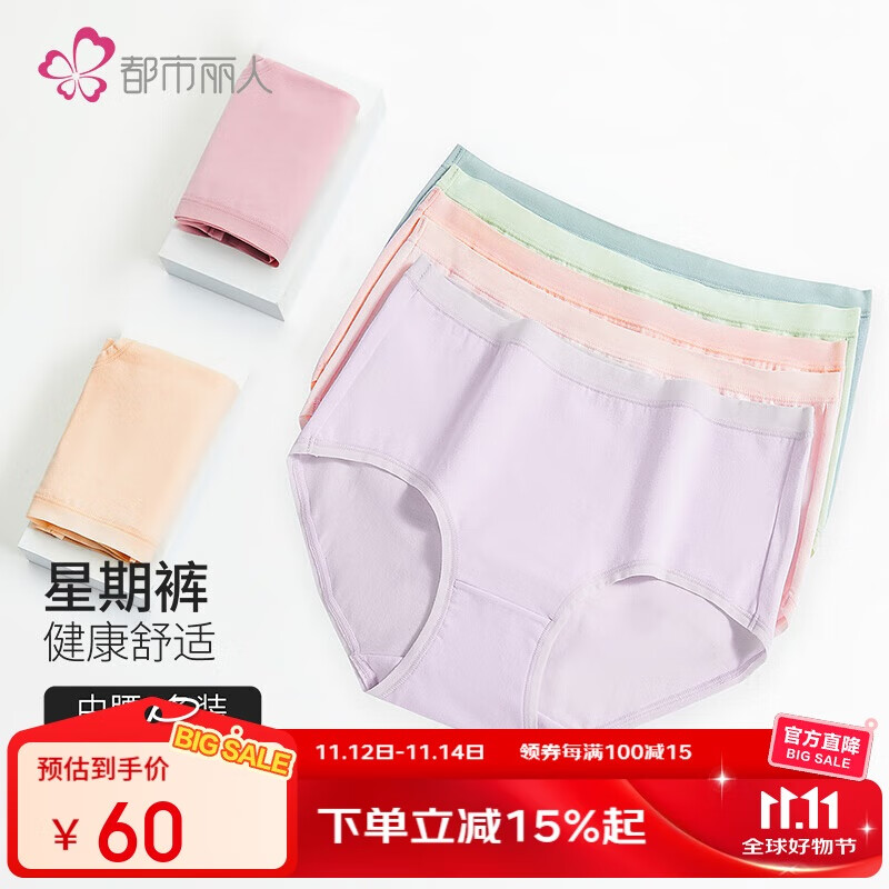 都市丽人内裤女纯棉简约舒适纯色女士中腰内裤星期裤7条装三角裤3KHA06