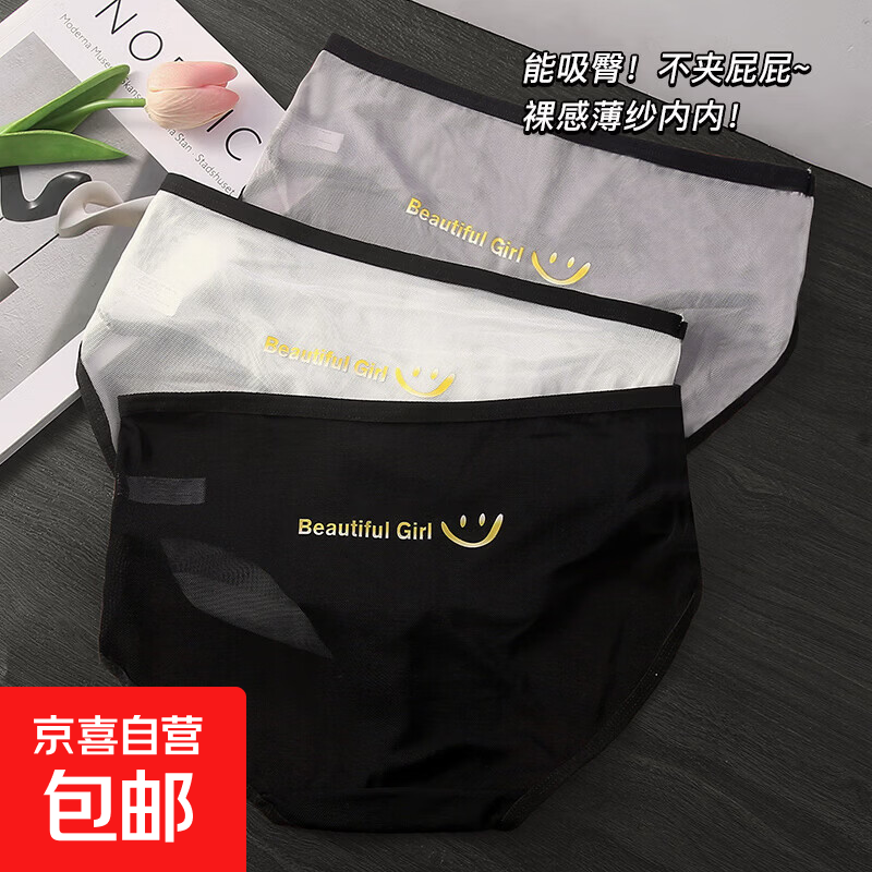 裸感网纱内裤女7A抗菌棉内档轻薄透气性感少女女生中腰三角裤速干 1条随机颜色 XL (100-125斤)