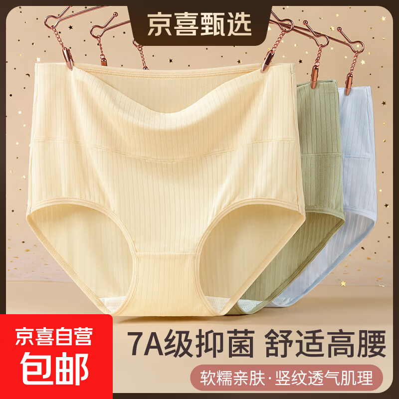 高腰女士内裤60支新疆长绒棉大码塑身收腹透气中腰纯色无痕三角裤