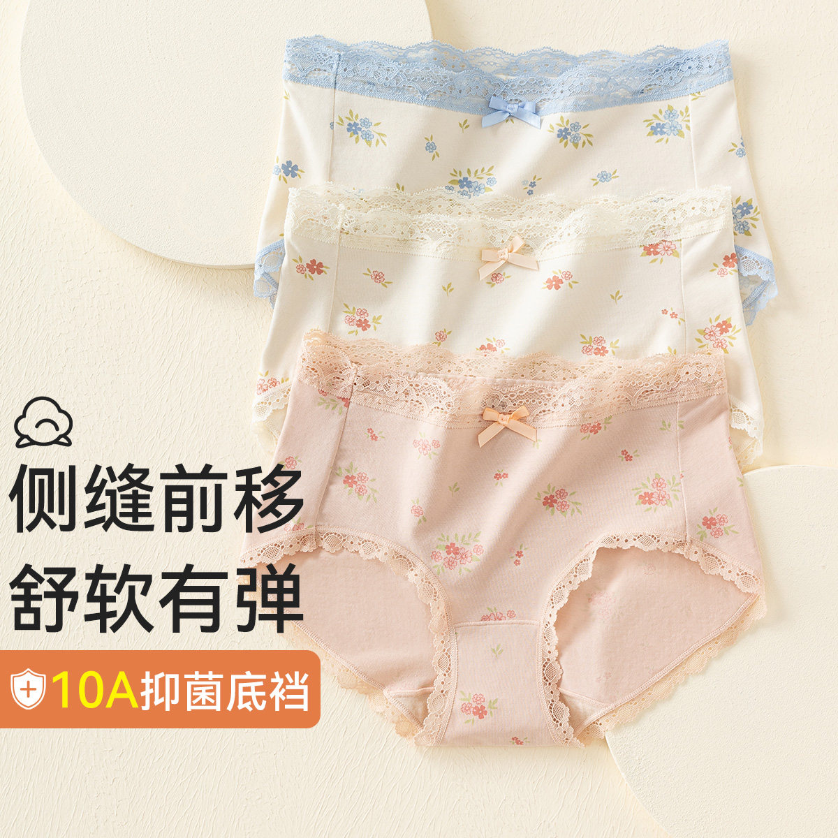 10A抗菌加长裆纯棉少女内裤A类婴儿棉甜美蕾丝边高弹中腰三角内裤
