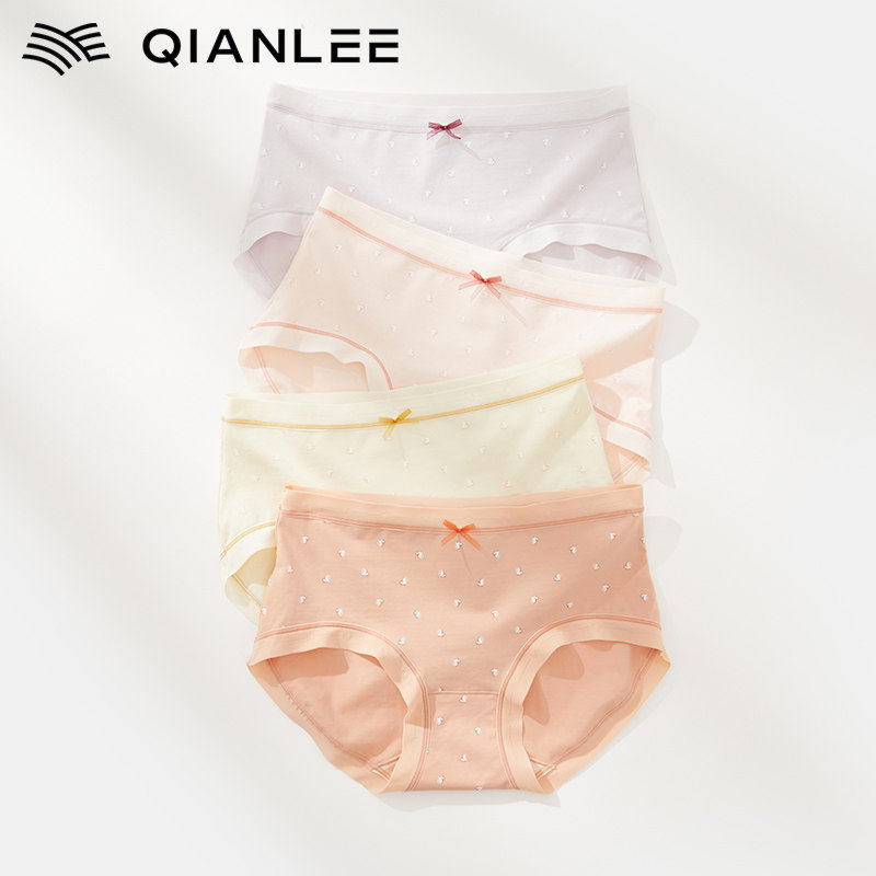 内裤女纯棉底裤中腰7A抗菌全棉裆舒适透气亲肤爱心印花三角裤