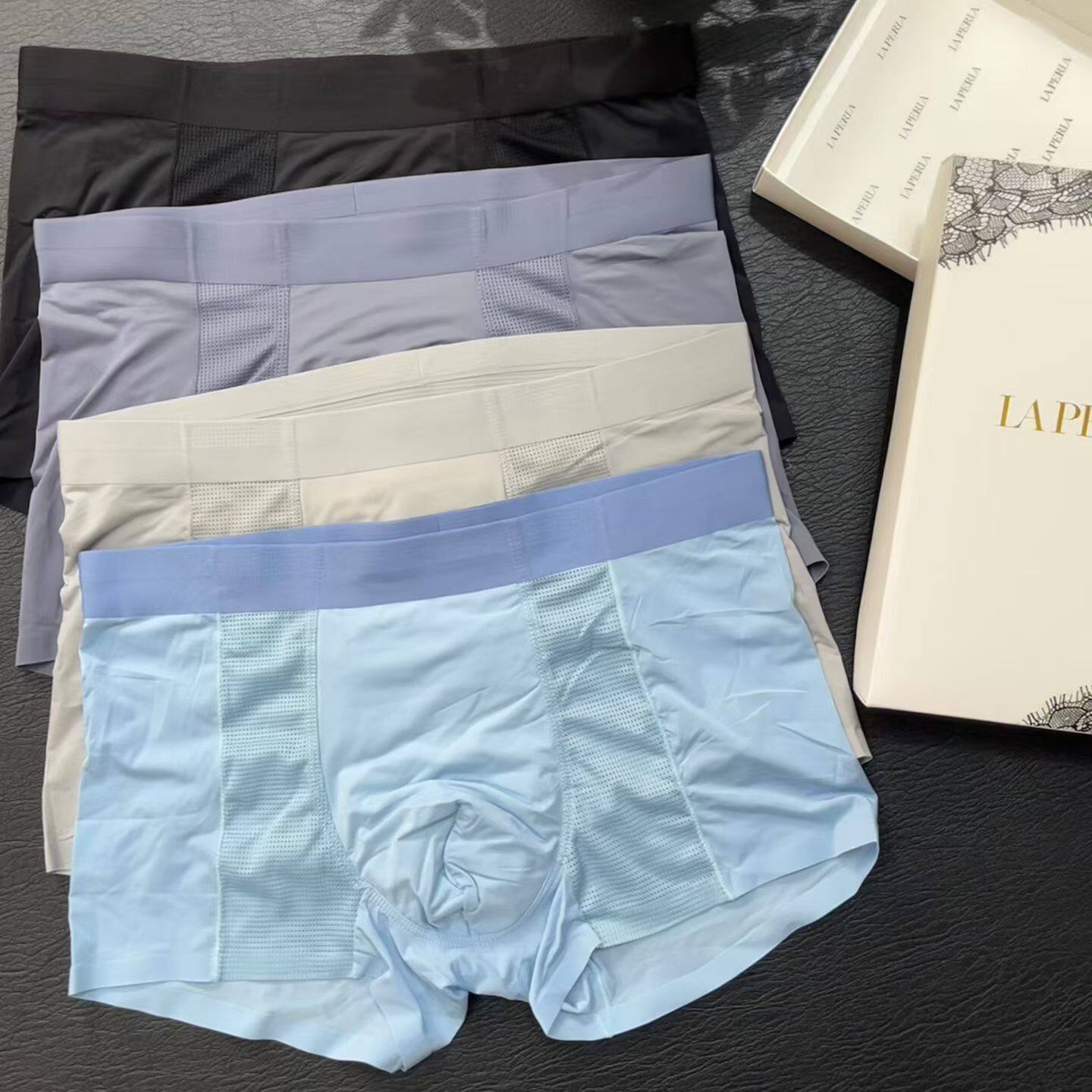 LAP冰丝透气孔无痕平角男士内裤 高弹力透气含蚕丝底裆四角内裤