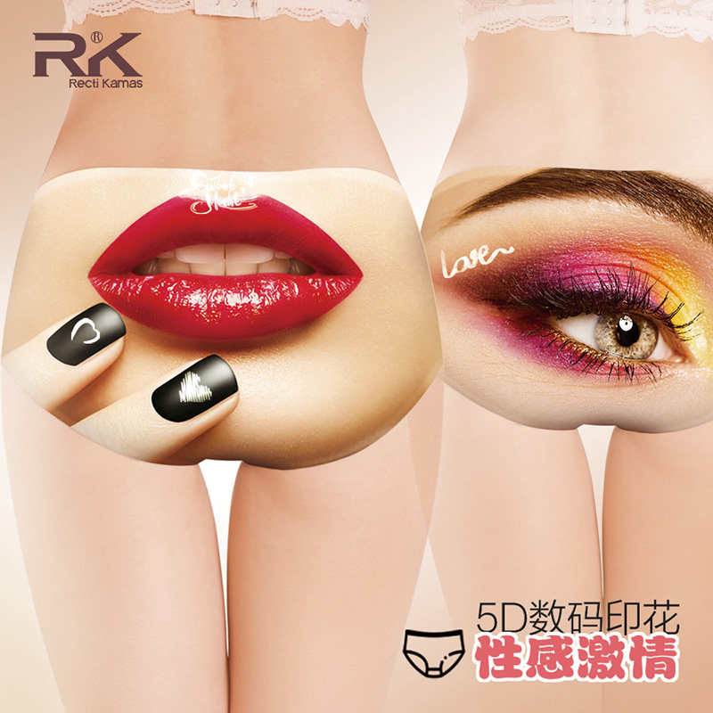 RK潮牌冰丝网孔透气性感主题卡通印花内裤女舒适中腰少女三角裤