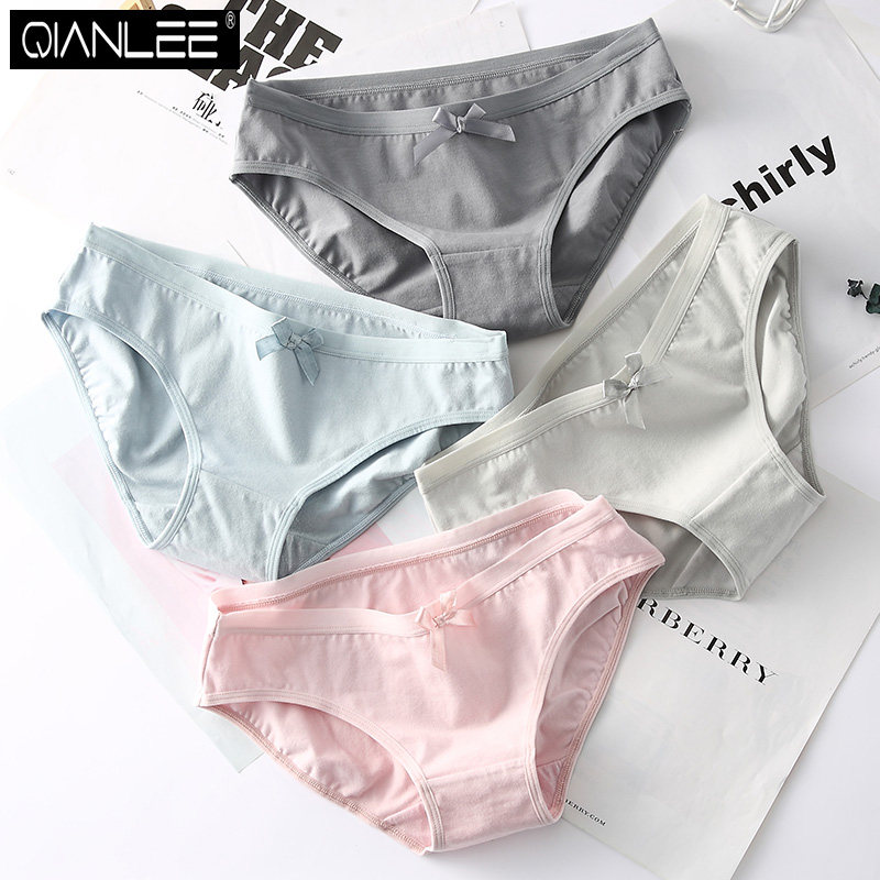 4条内裤女纯棉中腰无痕蕾丝边女士三角裤少女底R裤全棉裆棉质面料