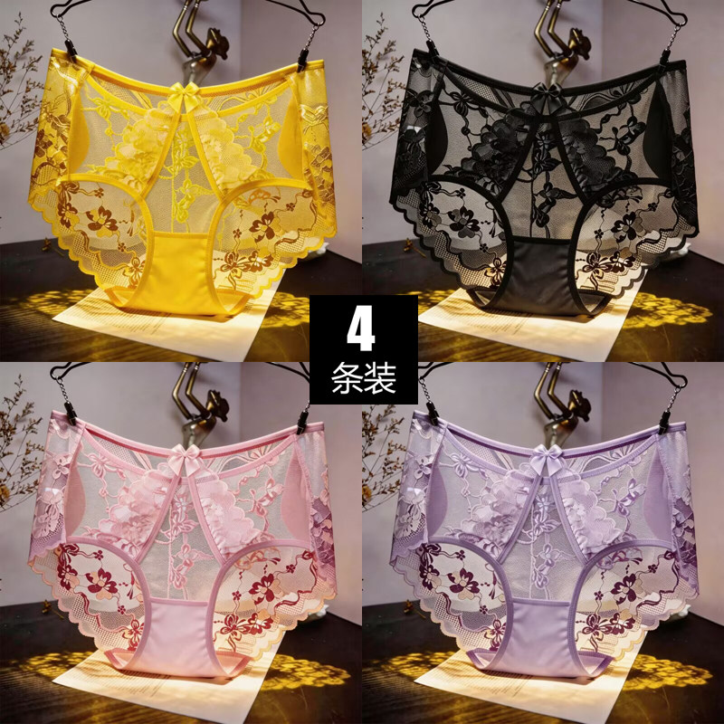 新款高腰蕾丝性感内裤女高颜值浪漫提花网纱透明大码舒适三角裤薄