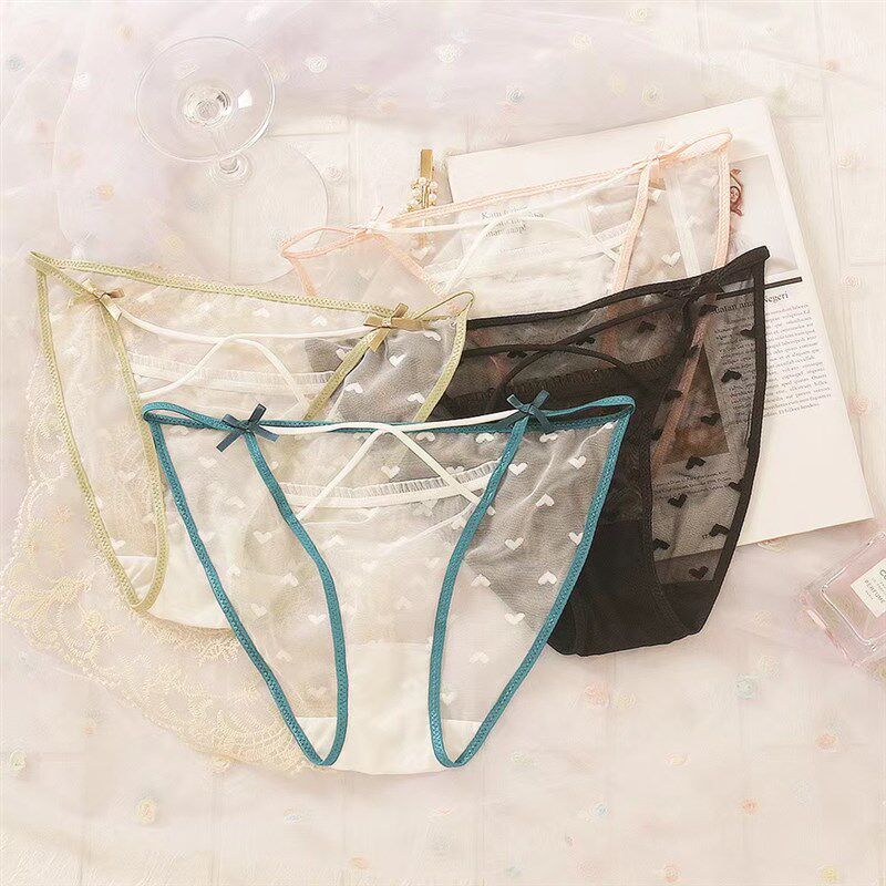 2条镂空交叉网纱性感内裤女士夏季新款裸感舒适无痕少女薄款三角