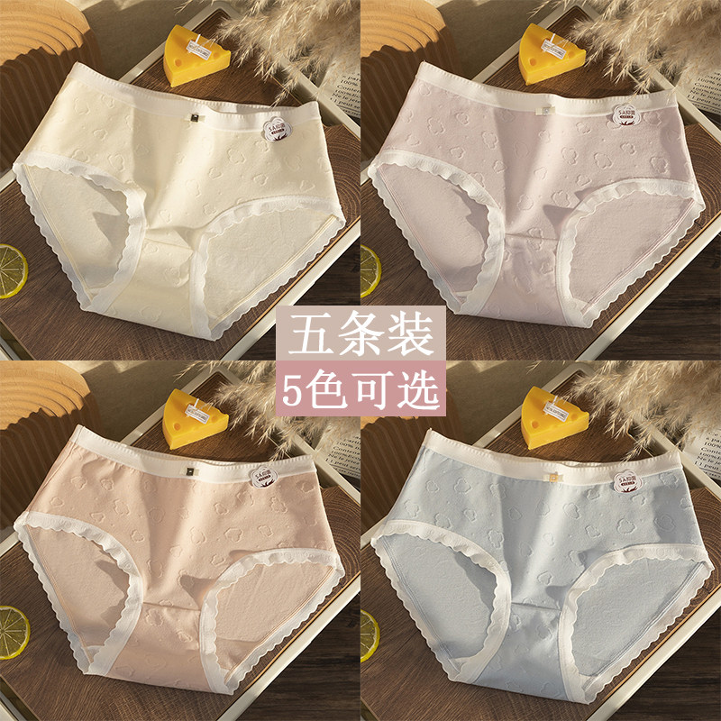 内裤女中腰纯棉抗菌全棉质舒适透气无痕日系蕾丝少女风三角短裤头