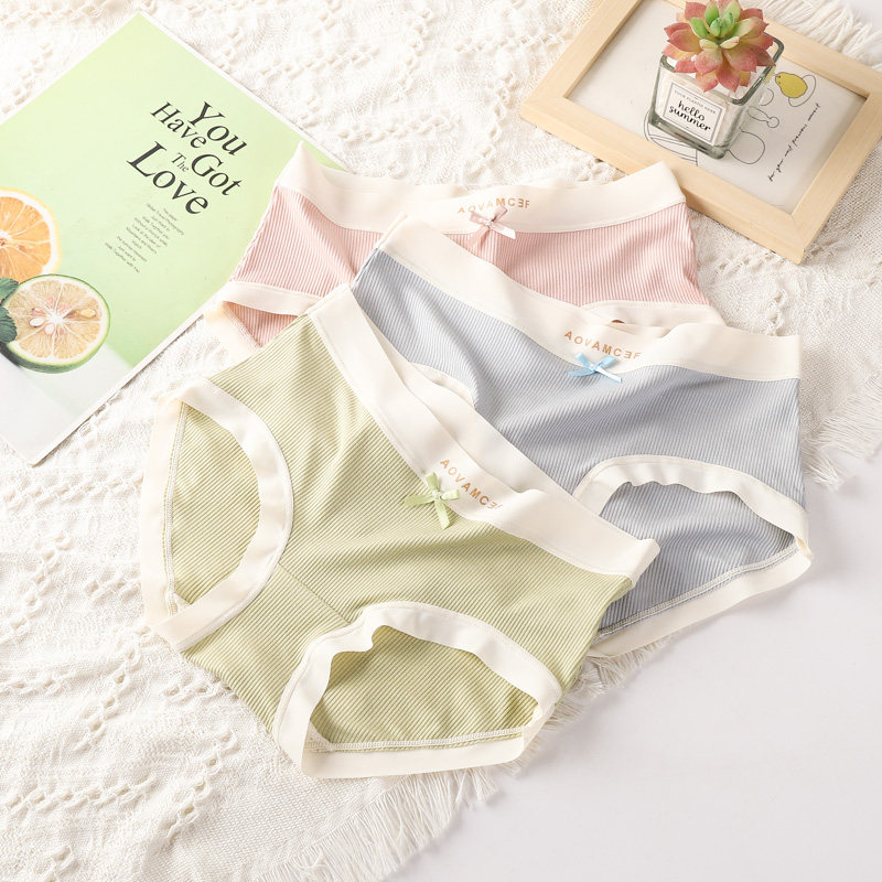 复古中腰蝴蝶结内裤女纯色学生日系甜美女士短裤头衩纯棉底裆无痕