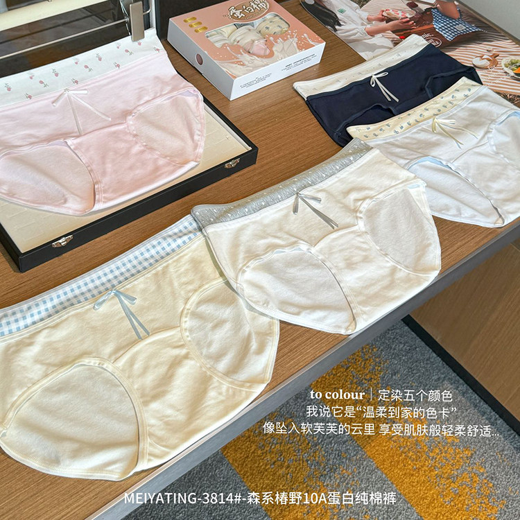 森系椿野10A蛋白纯棉裤女士内裤中高腰包臀抑菌加长底裆三角裤女