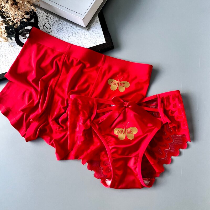 秋冬新品蕾丝纯棉情侣款内裤甜美蝴蝶印花浪漫礼盒2条装