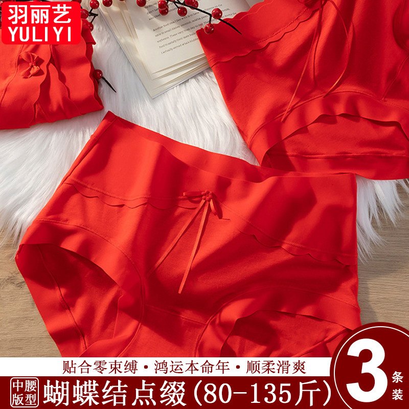 中国红柔软透气女士内裤鸿运本命年舒适立体包臀不夹臀女士三角裤