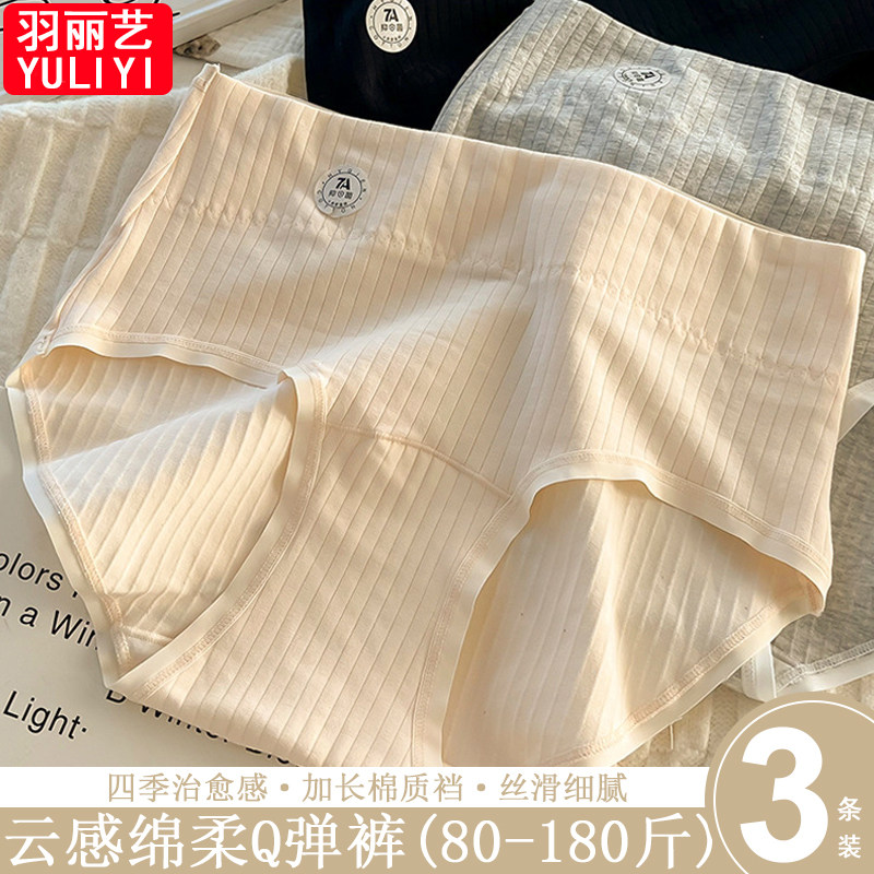 治愈感纯棉高腰大码内裤女四季轻柔舒适软糯细腻亲肤透气加长裆