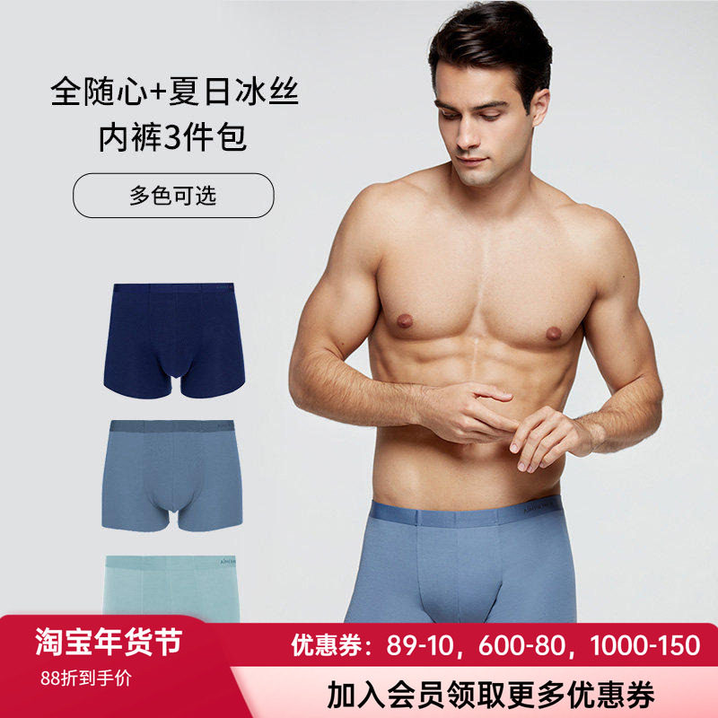 三件包 爱慕先生正品轻薄柔软弹力舒适男士中腰平角内裤NS23E561P