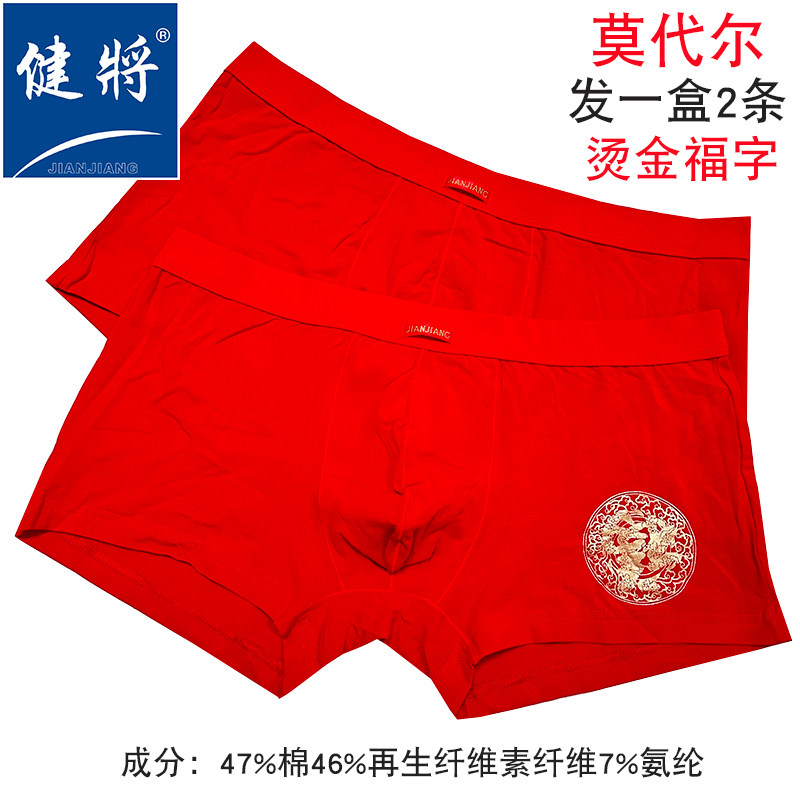 健将盒装2条大红色莫代尔本命年宽边男士中腰平角男式红内裤底裤
