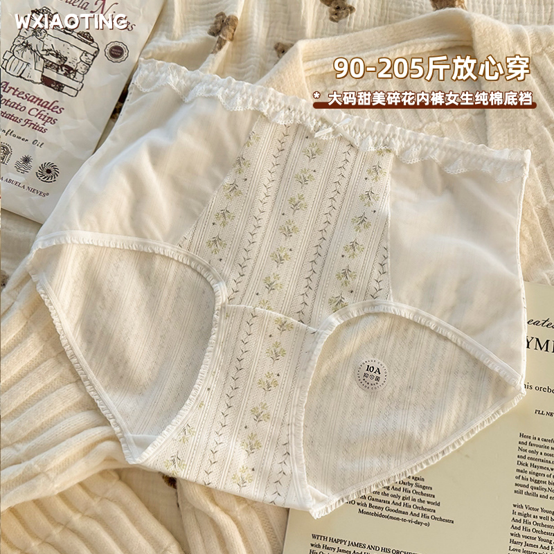 大码甜美碎花内裤女生纯棉底裆亲肤中腰无痕可爱少女新款三角裤