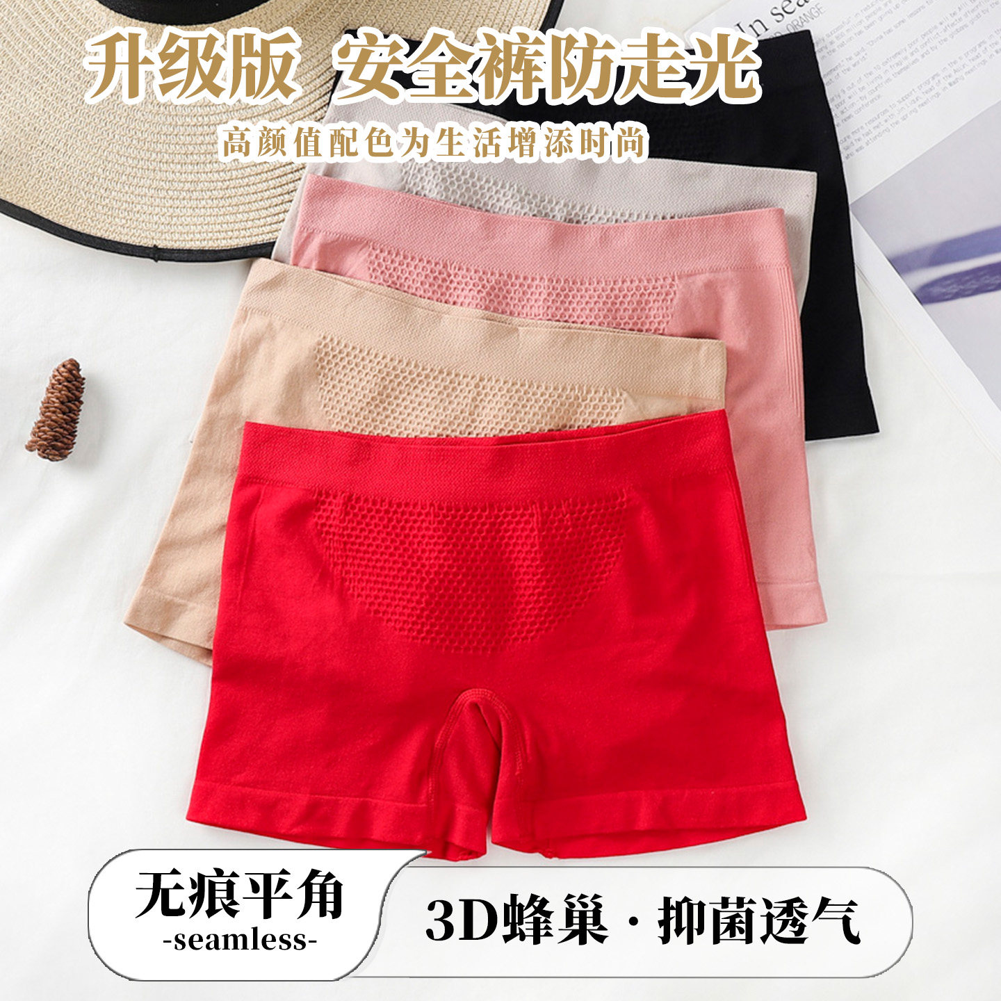 三条无痕蜂巢日系中腰纯棉档平角内裤安全裤防走光提臀透气女士