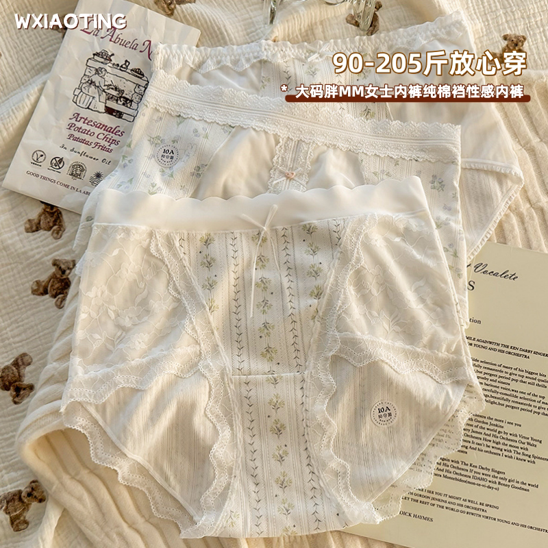 大码胖MM女士内裤纯棉裆女性感蕾丝女生蝴蝶结包臀中腰无痕内裤