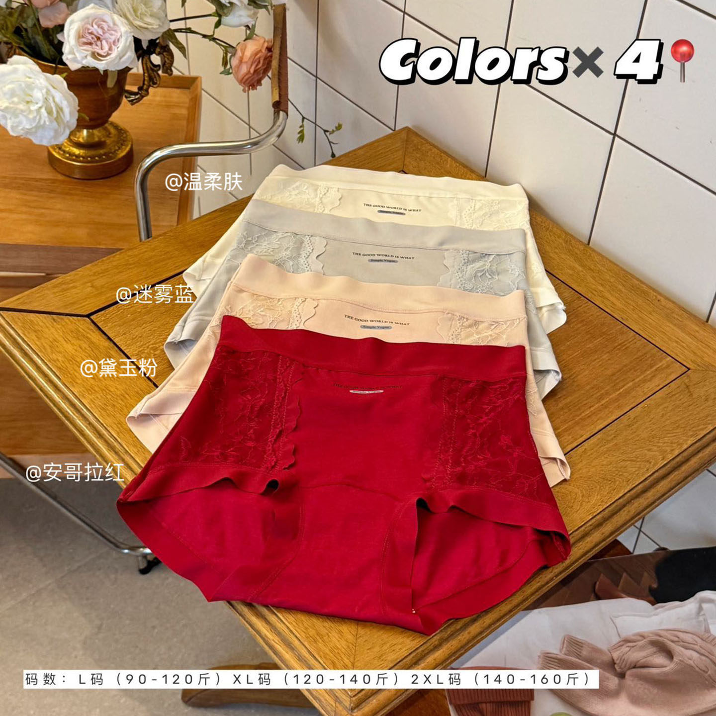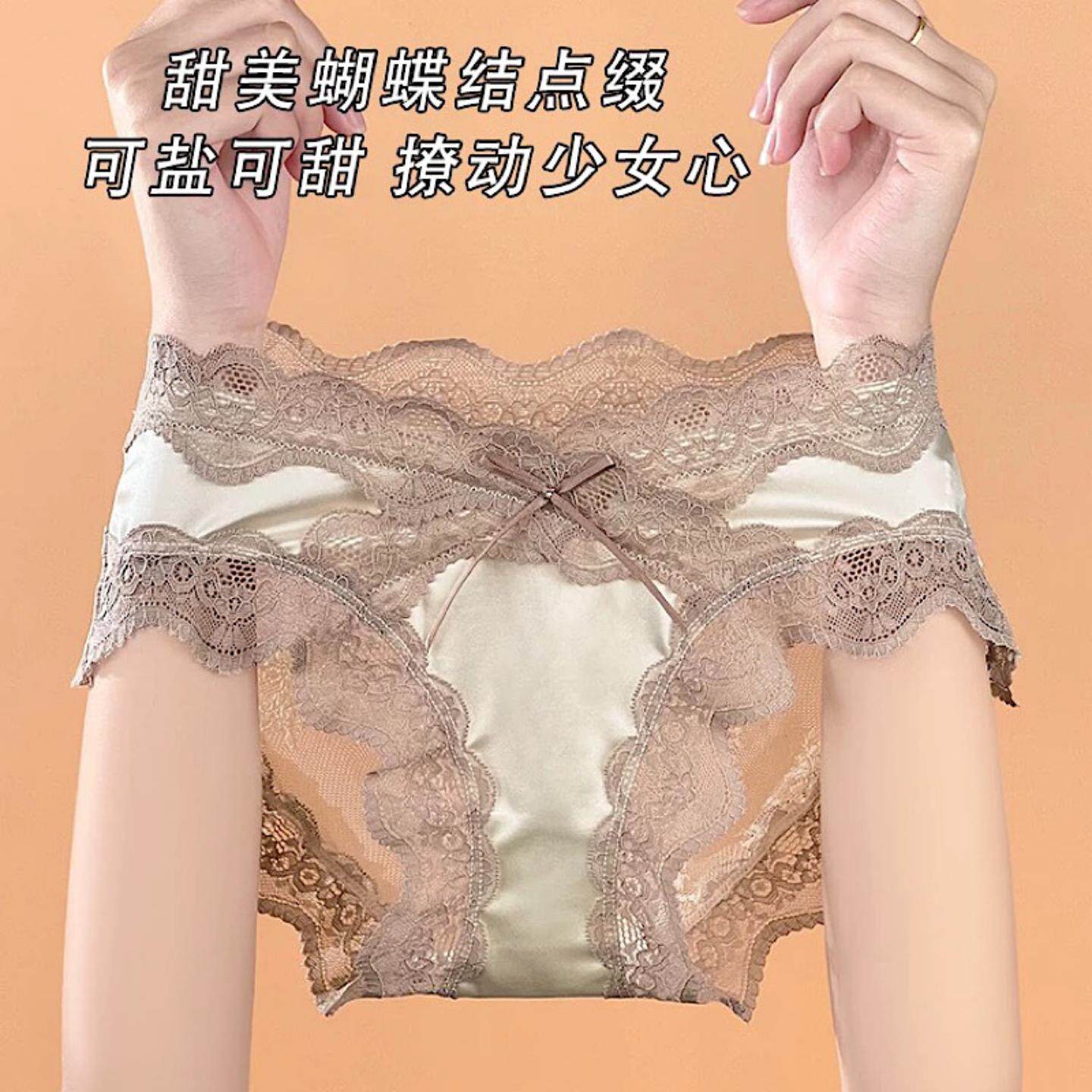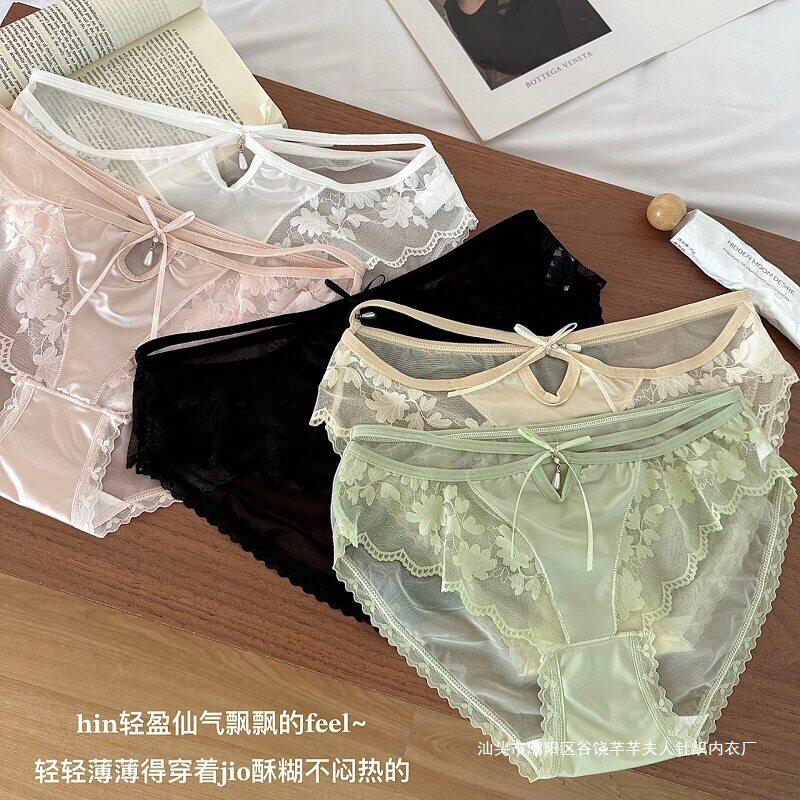 新款蕾丝欲风镂空内裤女性感痕缎面中腰透气舒适女裤