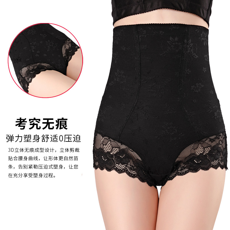 雅黛俪高腰蕾丝内裤女士桑蚕丝底档无痕不夹臀高腰收腹提臀平角裤