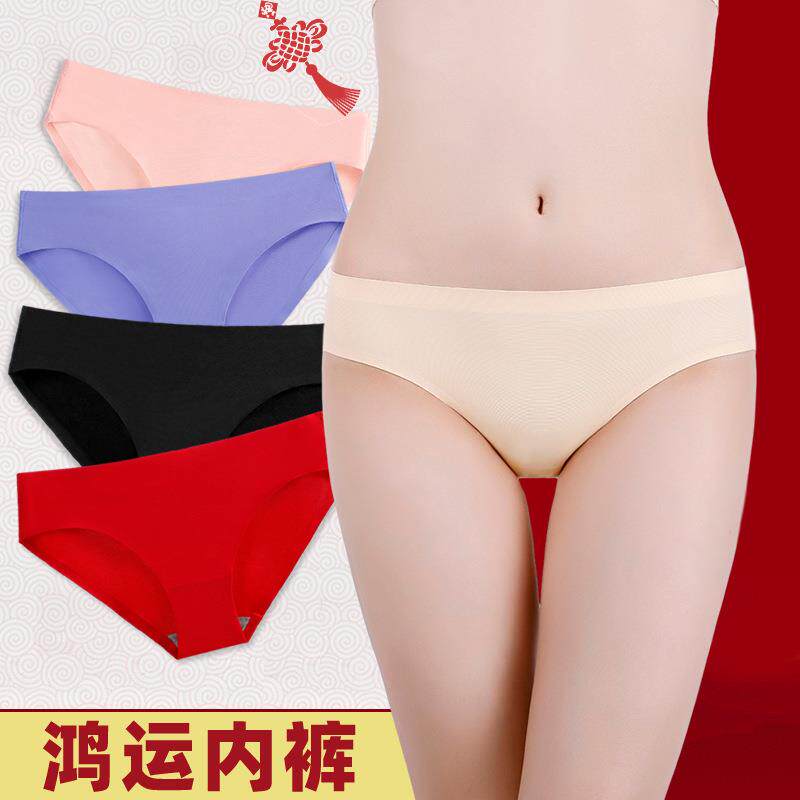 无痕速干简约少女内裤大红色冰丝透气提臀裤大码女士低腰三角裤