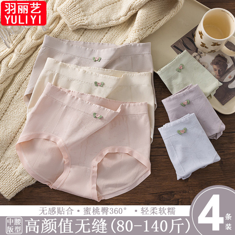 新款中腰纯棉浮雕滴胶图案内裤女高腰收腹轻盈无感棉柔感三角裤
