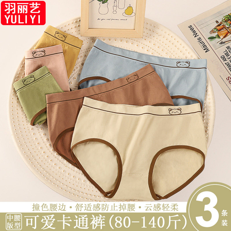 内裤女士纯棉大码透气薄款中腰全棉抗菌少女生卡通胖mm三角短裤头