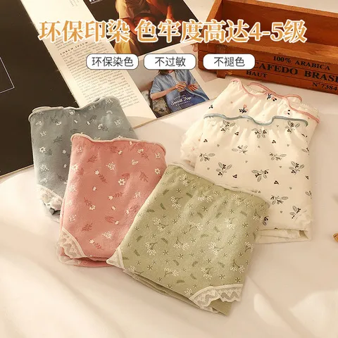 女全棉裆裆抗菌抗菌加长内裤碎花可爱透气婴儿棉100A三角裤头
