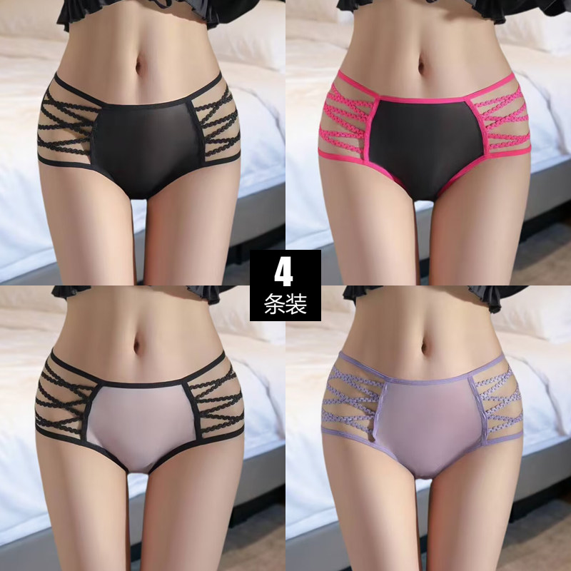 2026新款纯欲诱惑网纱透明性感内裤大码细带镂空少女浪漫三角裤薄