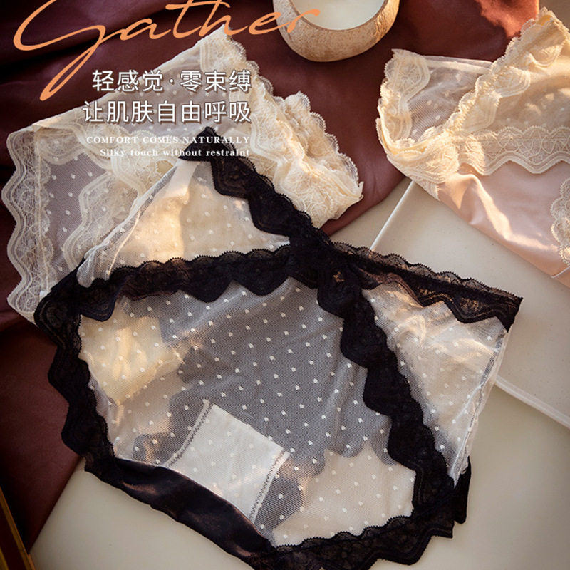 低腰三角内裤女丁字裤学生小内内少女带珍珠蕾丝开档大尺码少妇勒