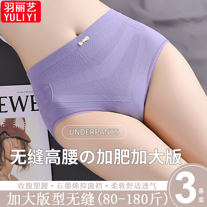 新款无缝高腰加肥加大版内裤女轻盈贴服无束缚感胖mm三角短裤头