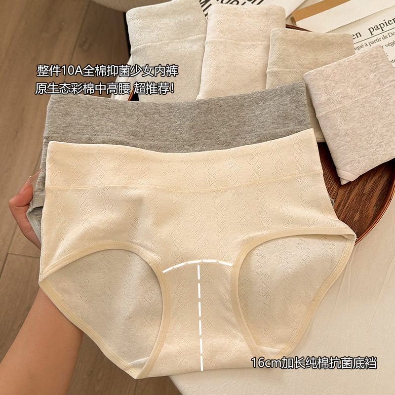 10A彩棉女士内裤A类纯棉内裤女简约无痕抑菌加长底裆原生棉大码裤