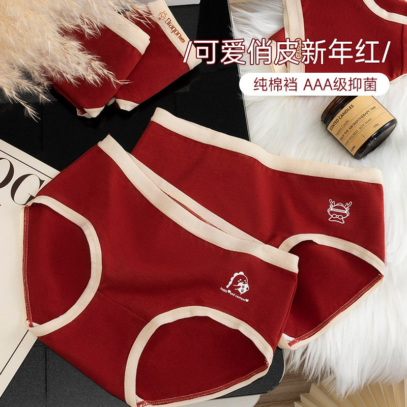 新款轻奢红色内裤女士抗菌裆短裤本命年秋冬季无痕三角底裤龙年