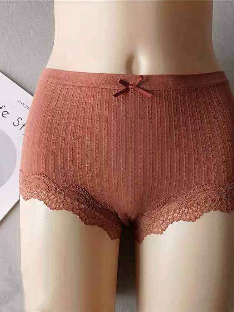 纯棉内裤女春秋无痕薄款性感蕾丝透气中腰收腹女士三角短裤4条装
