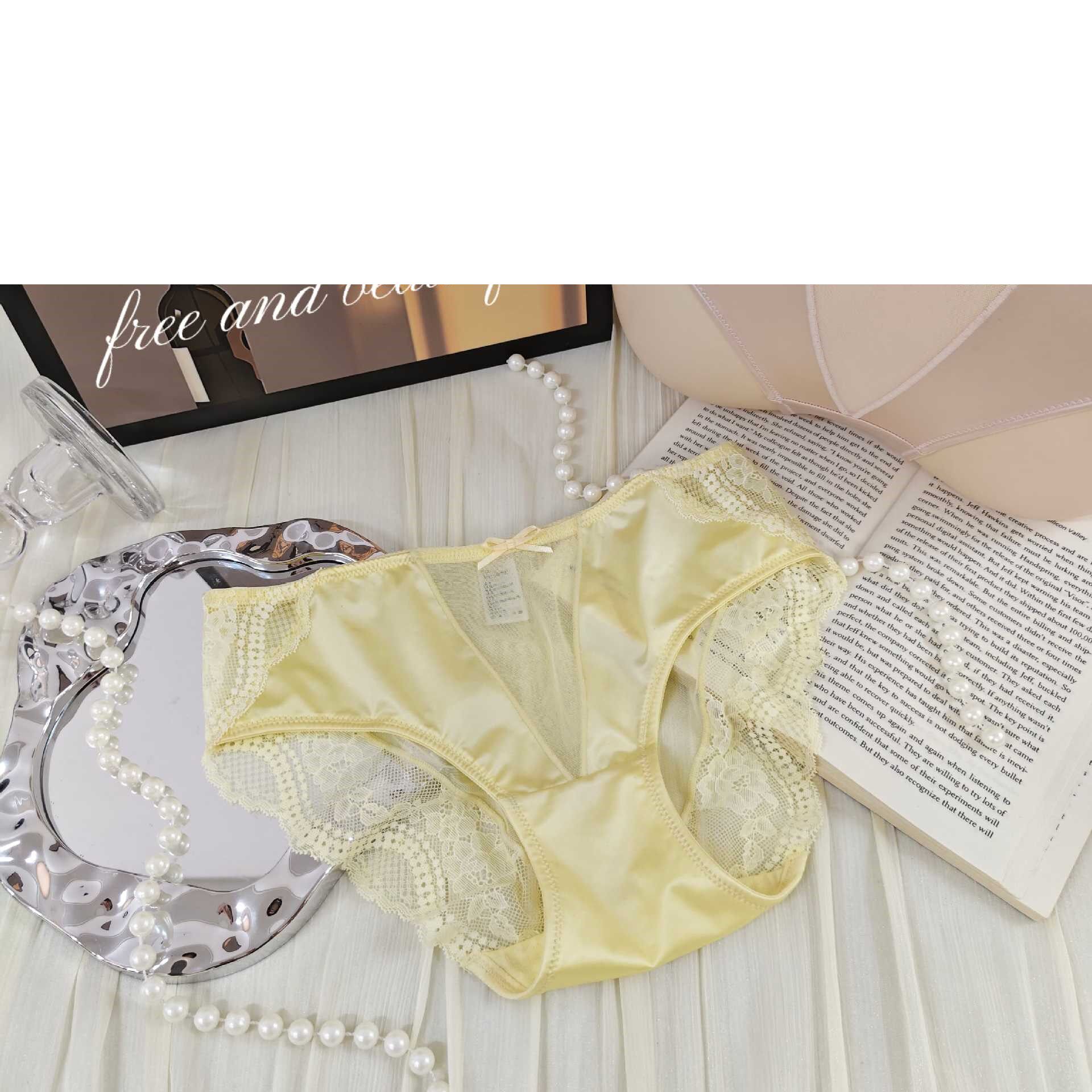 。黄色内裤女士舒适透气亲肤内裤甜美蕾丝花边网纱蝴蝶结性感纯欲