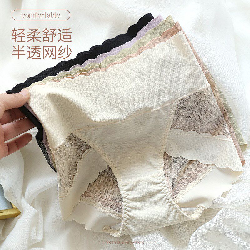 美宅国风云柔纱中高腰蚕丝底档抑菌加长底档无痕大码三角内裤女