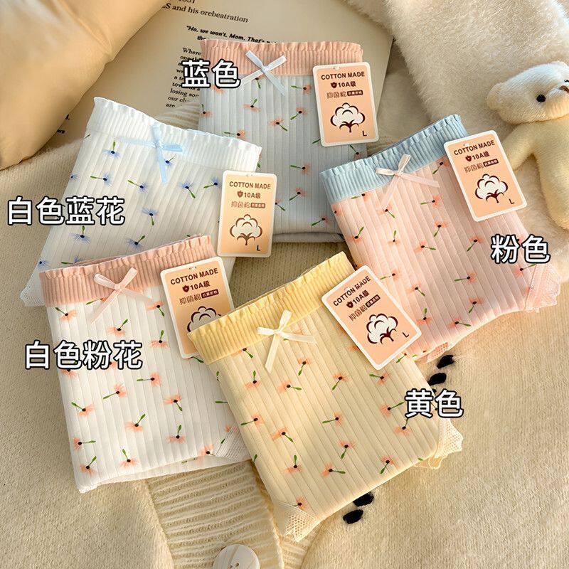 5条装花朵纯棉内裤女纯棉底档中腰ins亲肤透气少女学生甜美三角裤
