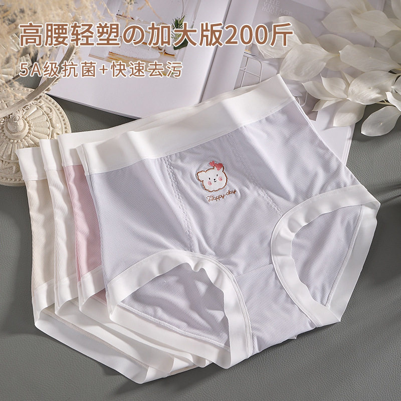 a类纯棉裆抗菌新款200斤大码内裤女冰丝刺绣高腰收腹收小肚子短裤