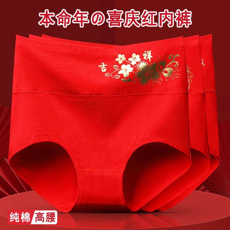鸿运本命年女士红内裤纯棉高弹舒适无束缚高腰防夹臀不卡裆三角裤