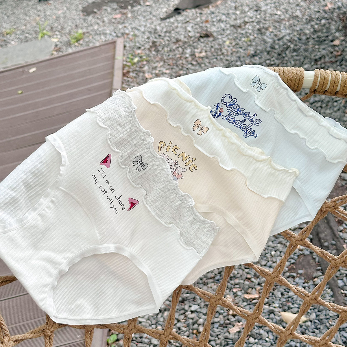新品爆洛丽塔风少女n女士印花蝴蝶结女士棉质内裤包臀棉裆少女三