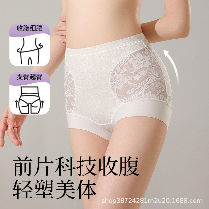 高腰收腹内裤女收小肚子强力夏季薄款无痕蕾丝塑身防走光安全裤头