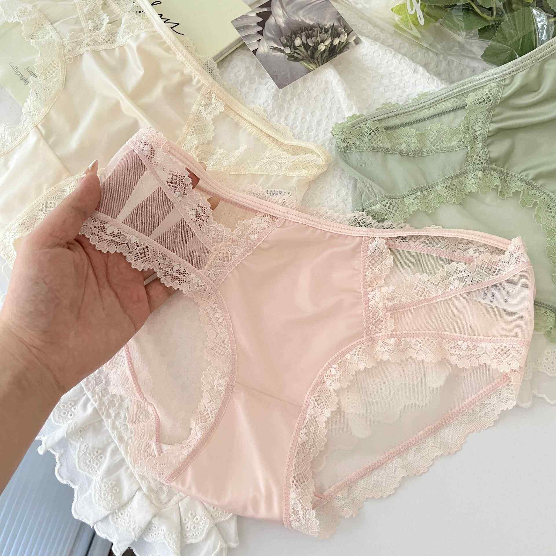 林隙月光~女士纯欲性感蕾丝内裤女夏季薄款速干甜美少女风三角裤