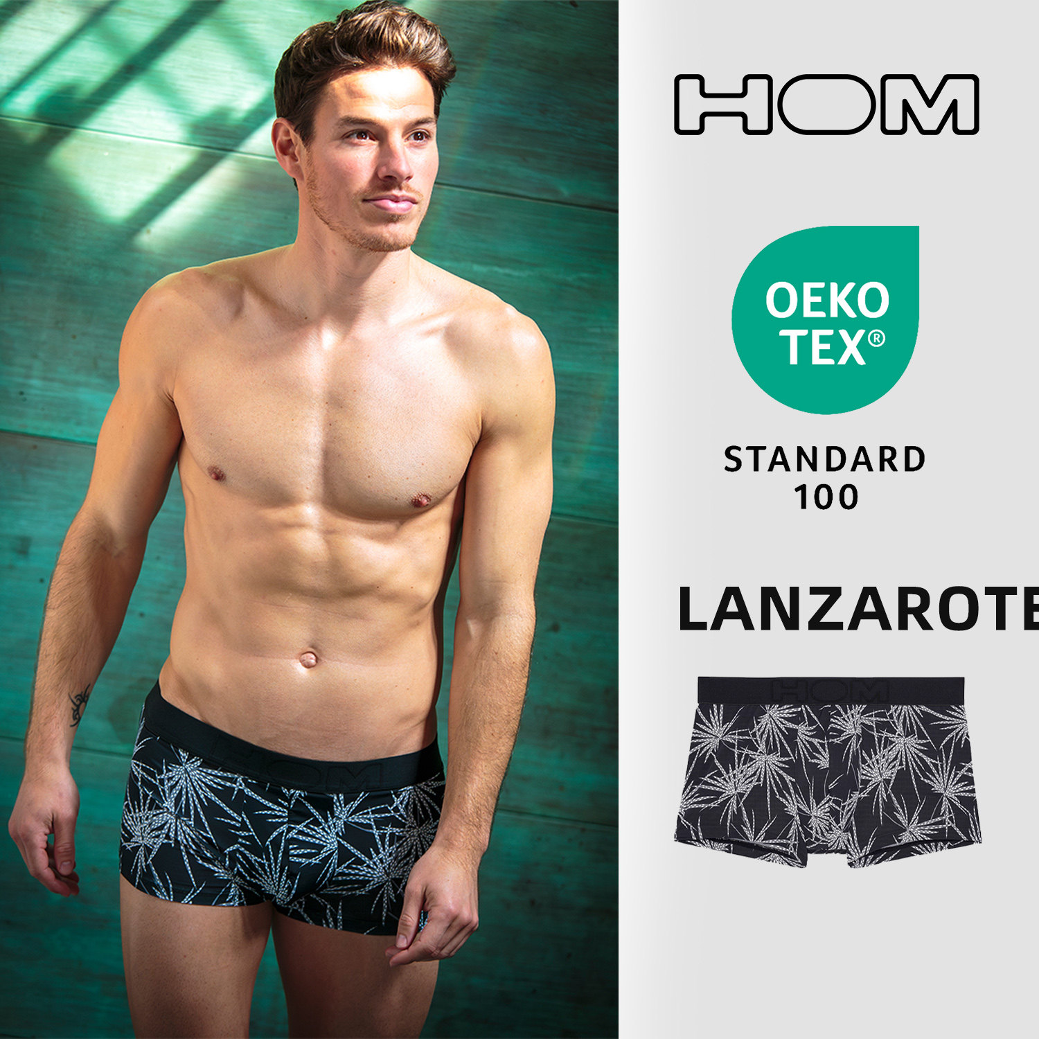 法国HOM男士平角内裤时尚新款印花设计感男四角内裤
