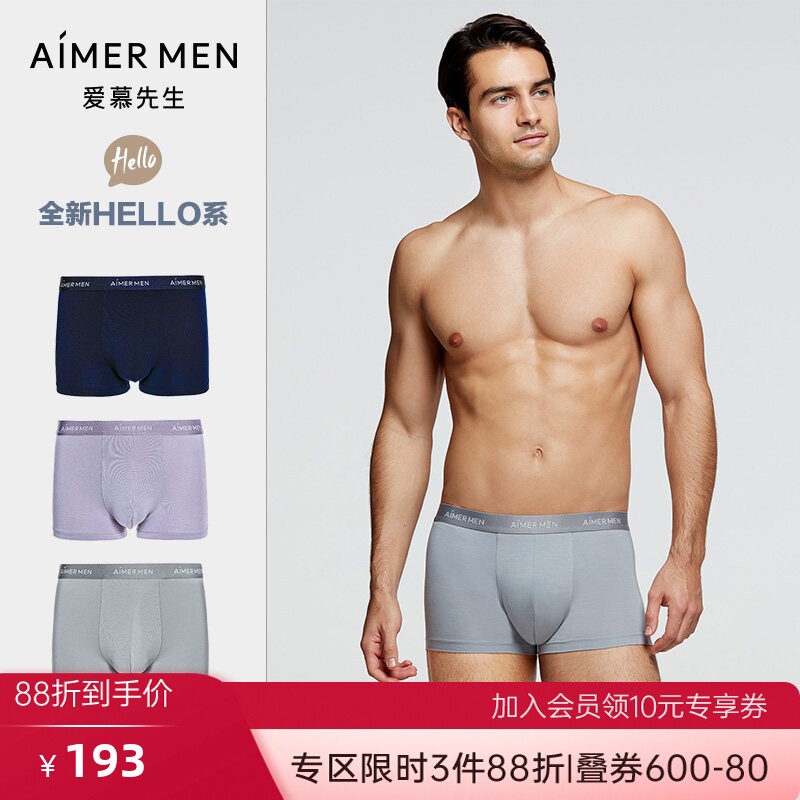 3件包爱慕先生官方正品平角裤HELLO裤夏季男士纯色抗菌莫代尔内裤