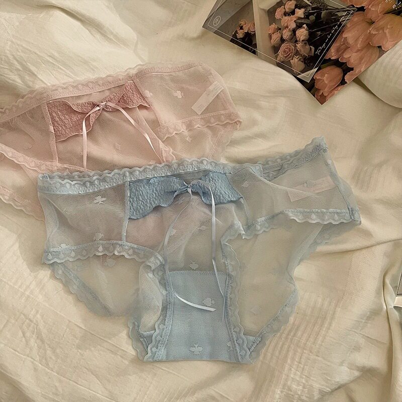 新款轻奢日系大蝴蝶结蕾丝内裤女202性感纯欲透明诱惑低腰三角裤