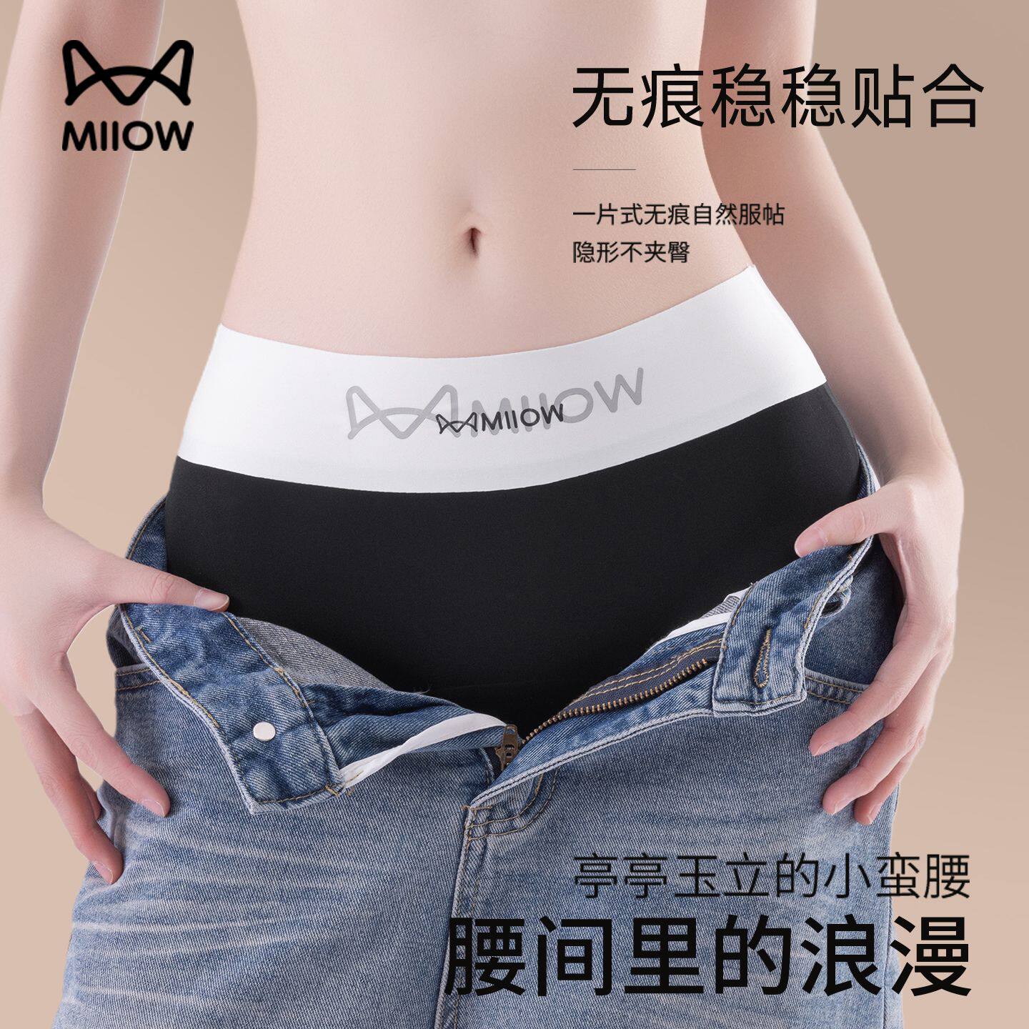 猫人内裤女纯棉抗菌裆冰丝无痕夏季薄款透气中腰大码包臀三角裤头